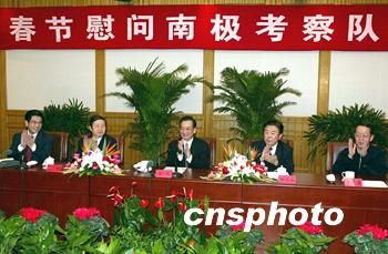 上午九時,衛(wèi)星電話將中國南極長城站、中山站、“雪龍”船與北京聯(lián)系在一起。在聽取考察隊領(lǐng)隊魏文良、長城站站長魏明、中山站站長湯妙昌、“雪龍”船船長袁紹宏的匯報后,溫家寶發(fā)表了熱情洋溢的講話。