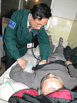 這是醫(yī)務(wù)人員在哈爾濱第四醫(yī)院救治傷員。