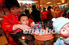 北京一位放寒假的小學生節日在商場里專心地玩《哈利.波特》升空游戲,以愉快的心情迎接新年。作者:張勤