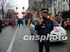 法國(guó)六十多個(gè)華人社團(tuán)歡天喜地慶新春,聯(lián)合組織的彩妝巡游在巴黎十三區(qū)舉行。法國(guó)警方為華人新春彩妝巡游開道。作者:蔚中