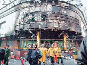 2003年2月2日下午,哈爾濱道外區(qū)天潭酒店發(fā)生特大火災(zāi),造成33人死亡。事故原因日前初步認(rèn)定:直接原因?yàn)榫频陠T工違規(guī)操作,明火向煤油爐內(nèi)注油引發(fā)燃爆。目前,該酒店的法人代表及經(jīng)營(yíng)者已被刑事拘留,有關(guān)部門已凍結(jié)其賬戶和財(cái)產(chǎn)。