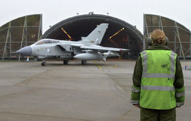 10日,英國(guó)皇家空軍“旋風(fēng)”式GR4型戰(zhàn)斗攻擊機(jī)從位于諾福克,瑪哈姆的空軍基地起飛前往波斯灣地區(qū)增援。