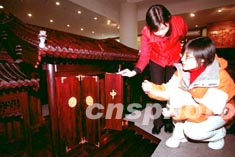 中國紫檀博物館羊年新春舉辦明清家具及老北京建筑展,圖中展示的用珍貴紫檀木制作的“四合院”模型,再現了中國古建筑的民族風貌。作者:張勤