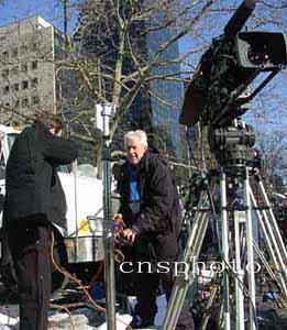 早于會前數小時,幾十家世界各地的電視媒體就在紐約聯合國總部門前搶占“機位”,準備進行全程直播式的詳細報道。轉播車、攝像機、反光罩、強光燈……各式設備,一應俱全,密密麻麻,一字排開,綿延數十米,把謀求和平與發展的聯合國搞得象賽場一樣。