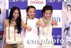 中國(guó)大陸及港臺(tái)影星趙薇、舒淇、莫文蔚十七日在東京為她們主演的新影片《夕陽(yáng)天使》作宣傳,該片將于近期在日本公映。作者:陶光雄