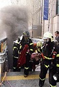 韓國(guó)救援人員搶救地鐵縱火案?jìng)麊T
