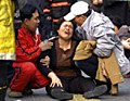 圖:韓國(guó)救援人員搶救地鐵縱火案?jìng)麊T