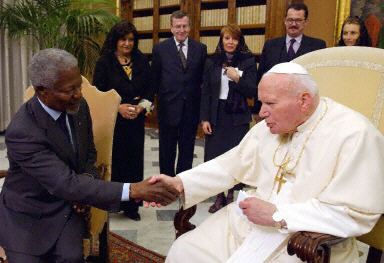 聯合國秘書長安南18日與羅馬天主教皇約翰保羅二世在梵蒂岡舉行了會談。