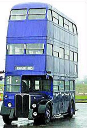 中新網2月20日電 在《哈利·波特與阿茲卡班的囚徒》當中,哈利·波特的道具將不再是飛天車。日前,有媒體曝光了哈利的新道具,是一輛艷紫色三層巴士──騎士公車。