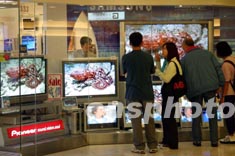 近來,全球品牌等離子電視機正以迅猛的速度進軍香港市場,這種“先入為主”的格局,或許正是等離子電視機走進香港百姓家庭的前奏。圖為香港一電器店展示各款價格不菲的等離子電視機。中新社傳真 潘索菲 攝