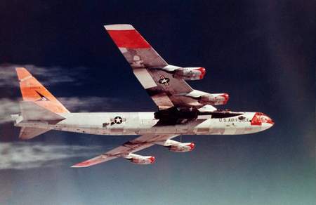 B-52是遠(yuǎn)程重型轟炸機(jī)航程為16000公里的航程,載彈量27噸,它可以帶20枚AGM—86B導(dǎo)彈、飛行到地球上的任何地方、在距離目標(biāo)2000公里以外的安全地帶向目標(biāo)發(fā)起常規(guī)攻擊或核攻擊。