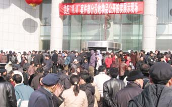 今天,為期六天的“慕馬腐敗大案”贓物拍賣預(yù)覽落幕,估計共有近十萬沈陽市民趕到展出現(xiàn)場“金劍大廈”,涌進(jìn)面積不大的幾個展廳,可以用“人潮洶涌、比肩接踵、絡(luò)繹不絕”來形容,人數(shù)之多大大超出舉辦者的意料。