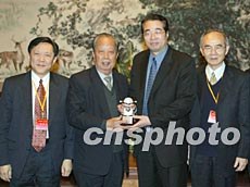 中國國務院僑辦副主任許又聲二十八日在北京會見以會長羅少榮(左二)為首的澳門歸僑總會訪問團。作者:滿會喬