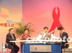 圖:政協委員濮存昕趕錄預防艾滋病節目