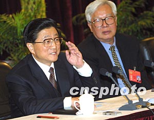 三月四日下午,中共中央政治局常委黃菊參加科協、科技界全國政協委員討論會。黃菊希望委員們積極獻計獻策,當好政府參謀。作者:史利