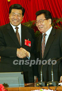 組圖:李瑞環(huán)祝賀賈慶林當選全國政協(xié)主席