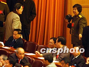 三月十四日,毛澤東主席的兒媳婦邵華請毛主席的女兒李敏,在全國政協十屆一次會議閉幕式上拍照留影。邵華新近當選為中國攝影家協會主席。作者:賈國榮