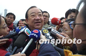 三月十四日上午,出席全國政協十屆一次會議閉幕式的全國政協委員朱慶生談起最近發生的非典型性肺炎時,立刻被記者團團圍住。作者:史利