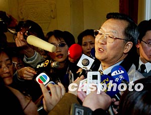 再次出任衛生部部長的張文康十七日就非典型性肺炎回答港臺記者提問。作者:鄭萍萍