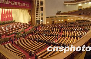 胡錦濤今天身著深色西裝,面含微笑。這是他第一次作為國家主席站在人代會的講壇上。胡錦濤的講話,贏得全場多次如潮掌聲。