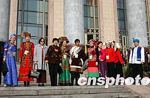十屆全國人大一次會議三月十八日閉幕,全國人大少數民族代表會前在人民大會堂前合影留念。作者:盛佳鵬