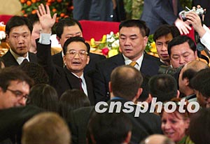 組圖:溫家寶揮手向記者致意