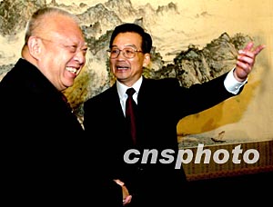國務院總理溫家寶,十九日在北京中南海會見香港特別行政區行政長官董建華。作者:鄭萍萍