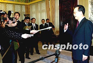 國務院總理溫家寶十九日在北京會見香港特別行政區行政長官董建華時對香港記者表示,香港一定會走出目前的困境。作者:鄭萍萍