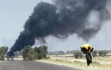 當地時間23日,伊拉克南部一石油管道被伊軍點燃,冒起滾滾濃煙。