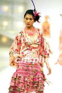 張路路等十一位香港著名設(shè)計師的作品集體亮相,為二零零三年中國國際時裝周首日表演增添絢麗色彩。