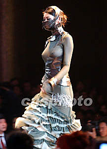 中國上海的楊智推出《鐵甲柔情》服飾系列,以皮革甲胄烘托走向戰(zhàn)場的女性軀體,三月二十五日在北京舉行的“漢帛杯”國際青年時裝設(shè)計師作品大賽上獲得一項最佳獎和銅獎。作者:賈國榮