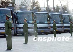在所有為“兩會”執(zhí)勤的哨兵當中,最不引人注目的要算車場哨了。他們沒有大門哨的威武瀟灑,沒有路線哨的風光無限,在“被人遺忘的角落”。他們上哨時背對大街,代表休息時面對的是一排排的大客車,代表開會時面對的是光禿禿的車場。車場哨兵景子輝說:“我們的哨位雖然不被注意,但它是大會安全工作的‘軟肋’,我們必須守好它,確保萬無一失!