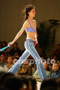 香港mudd jeans 2003年春夏時(shí)裝展二十六日在北京中國大飯店舉行,模特展示具有青春活力的休閑春夏時(shí)裝。作者:毛建軍