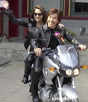 這部影片不愧為動作片,幾位明星整裝待發(fā),楊紫瓊、任賢齊以一身黑色皮衣褲出場,一前一后颯爽地坐在銀色摩托車上,以片中的動作造型展示給記者。雖然兩人首次做搭檔,造型獨到,創(chuàng)意新奇,導(dǎo)演馬楚成也認(rèn)為兩人的組合是天造地設(shè),但從外型、氣質(zhì)來看,還是受到記者們的質(zhì)疑,難道這部影片也要表現(xiàn)“姐弟戀”?楊紫瓊風(fēng)度極佳地回應(yīng)道:“你們是認(rèn)為任賢齊不夠男人,還是我老了?”一句話惹得眾人哄堂大笑,一向好搞笑耍寶的小齊更以“正襟危坐”之狀顯“威風(fēng)”。