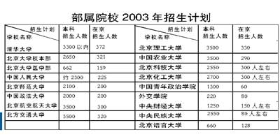 中新網3月30日電 據北京娛樂信報報道,二十所部屬、市屬高校今年在京招收的本科人數已經確定。今年,部屬院校基本上都不擴招,市屬高校則適當擴招。招生人數詳見右表。