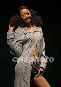 在三月二十九日的2003中國國際時裝周的T字臺上,模特展示中國男裝品牌“七匹狼”時裝。作者:史利