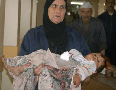 圖:伊拉克平民在美英聯軍的空襲中受傷