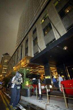 張國榮的家人及朋友晚上到瑪麗醫院了解情況,但不發一言。