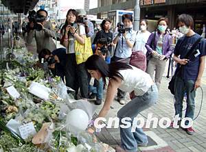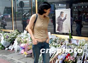 多圖:文華酒店外有不少張國榮歌迷獻花致哀