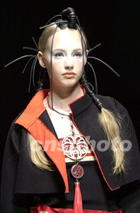 日本著名時(shí)裝設(shè)計(jì)師HIROKO KOSHINO四月三日晚在二00三年?yáng)|京秋冬時(shí)裝展上發(fā)表了她的最新作品,希望通過(guò)現(xiàn)代手法來(lái)表現(xiàn)日本傳統(tǒng)服飾的美感。作者:陶光雄