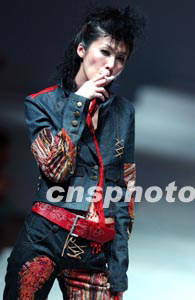 中國(guó)“威鵬”服裝春天在北京展示新款牛仔裝,狂放不羈的設(shè)計(jì)風(fēng)格凸顯現(xiàn)代人的另類時(shí)尚觀念。作者:盛佳鵬