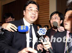 中國國務(wù)院新聞辦十日在北京舉行非典型肺炎新聞發(fā)布會(huì),衛(wèi)生部副部長(zhǎng)馬曉偉在發(fā)布會(huì)結(jié)束后被記者們追訪。作者:張煒