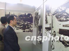 反映六十年前日本法西斯對(duì)重慶實(shí)施五年多的“政略轟炸”和“戰(zhàn)略轟炸”的大型圖片近日在重慶展出,吸引了眾多參觀者。作者:雷鳴
