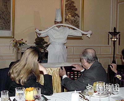 中新網(wǎng)巴黎4月13日電(記者蔚中)“哇,這簡(jiǎn)直是天使的頭發(fā)!”當(dāng)親眼目睹北京面點(diǎn)師如變魔術(shù)似地將一公斤面頃刻間變成了十余公里長(zhǎng)、細(xì)可穿針的龍須面時(shí),法國前總理巴爾伉儷情不自禁地贊嘆道。