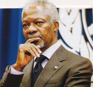“從遠處來看,灰白色的頭發與胡須使得安南的臉上仿佛籠罩著一層淡淡的光環。”極富散文情調的《紐約客》雜志這樣描寫安南的臉龐。然而,近距離看過安南的人都會同意,實際上那是一張最為普通不過的臉。在任何時候,它都不會讓你感覺到它隱藏了什么,當然你也不會從中看出什么。對于聯合國秘書長來說,擁有這樣一張臉龐恐怕最為合適不過。因為在這個充滿矛盾的國際舞臺上,聽取別人而隱藏自己的意見是聯合國秘書長這個職位必備的素質。