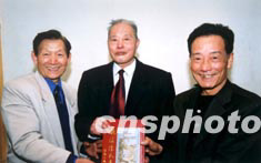 金門陳氏宗親會理事長陳添丁(左一)四月十四日在廈門接受廣東汕尾市陳氏的族譜,該族譜對臺灣陳氏幾百年的歷史有詳細描述。作者:陳勇