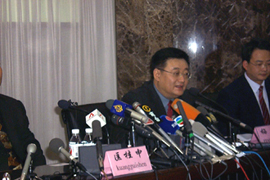 在北京同仁堂藥店,同仁堂集團(tuán)總經(jīng)理梅群介紹說,自東直門醫(yī)院專家提供預(yù)防“非典”的中藥藥方后,同仁堂便開始代煎中藥并包裝。截至4月16日,同仁堂已解決了48萬人次的抓藥需求。目前,同仁堂在積極維持藥品價格,保證藥品質(zhì)量,滿足市場需求。梅總經(jīng)理還回答了記者的提問。