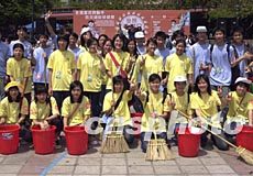為掀起全民自覺防病熱潮,澳門十八日舉行“全民清潔日”活動,許多澳門的中學生也積極地投入到清潔活動中來。李剛 攝