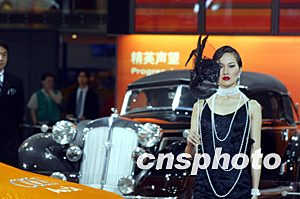 將于二十一日開幕的第十屆上海國際汽車展覽會目前進入最后布展階段。上海靚女十九日在奧迪老爺車前進行演練。作者:趙振清