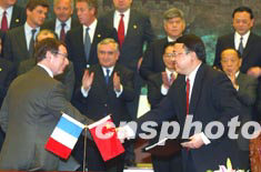 會談結束后,兩國總理出席了《中方購買三十架空客飛機的總協議》等三個協議的簽字儀式。(完)